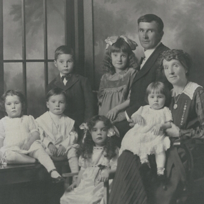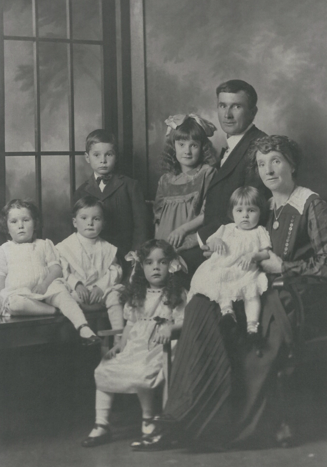 ![]() Alfred Blaney and children Portrait Back L-R: William Alfred Jn, Dorothy, William Alfred Sn, Elizabeth Jane Front row L-R: Edna, Edwin, Florence, & Virginia (on Elizabeth) |