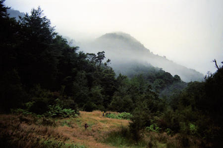 7th March 1998: Delivered from Nelson Airport to start of Wangapeka Track by minibus - John McCarthy (lawyer), Keith Blayney (GP), Alan Rogers (lab technitian), Neil Taylor (accountant), John Barrell (gas engineer), Ian Bardsley (lab manager) and Cathy Thompson (vet). Some photos are by John McCarthy [JM], Alan Rogers [AR] or Cathy Thompson [CT].