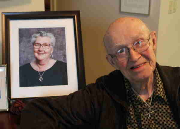 Fred Blayney with picture of Dora Mae