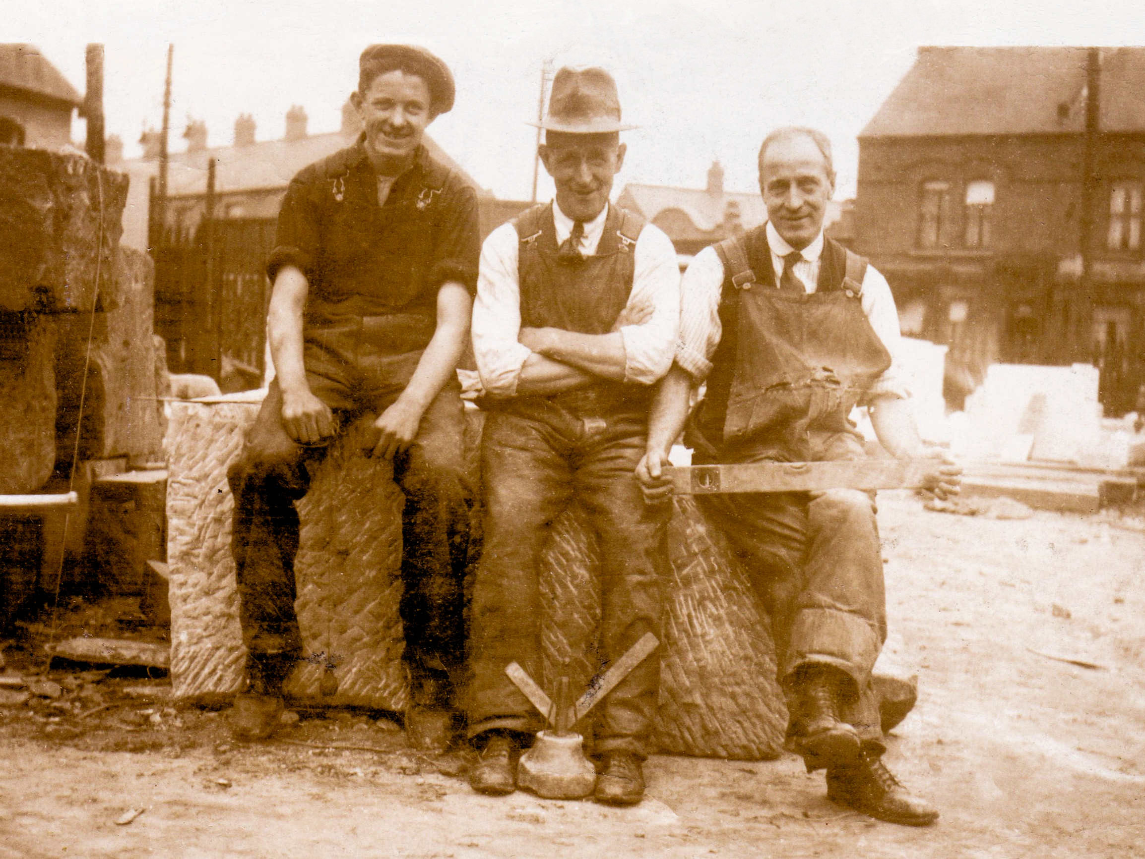 Fred Blayney (R) in his Stonemason Yard c.1935
