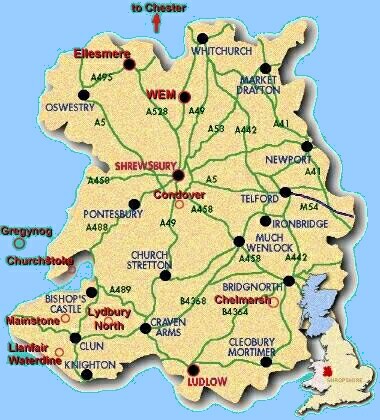 Because the border does a loop, Churchstoke is actually East of a section of Shropshire!