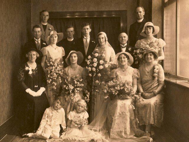 2nd (L-R): Edwin Carey Potter, bridesmaid ?, Noel Carey Potter, Stanley & Jenny, Edward Fairbrother & Mary Flo Potter