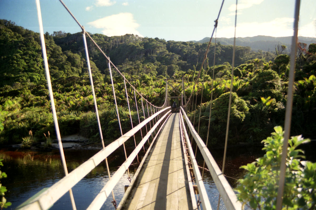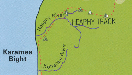 12 March 1998: Cathy didn't join us because she had broken her arm. Some photos are by John McCarthy [JM] or Alan Rogers [AR]. The start of the Heaphy is very pretty and easy going. However, one soon learns not to stop for long as the sandflies are more numerous and vicious than I have EVER encountered. They didn't let up until past Lewis. It was cover-up every exposed part and go for a stroll to avoid the clutch of obnoxious Cantabrian trampers we encountered (luckily they were heading the opposite way the next day). After Lewis the track heads steadily up to MacKay. |