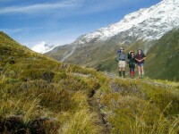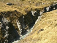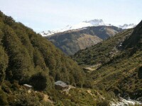 There are wonderful panoramic views of the upper Dart system dominated by an unnamed southern spur of the Humboldt Tower. The track continues to drop into the Dart, and it was here, as I was hurrying to catch up, that I rolled my ankle badly. Years of demonstrating to patients how to keep the lateral ankle ligaments elastic paid off as it became clear I hadn't ruined anything. The track finally crosses back over the Snowy immediately before the Dart Hut.
