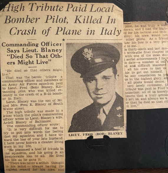 Lieutenant Fred Erwin Blaney Jr [born 10 May 1920 - died 12 Sep 1943]Click any picture to see full size | ||