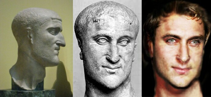 Photos of busts of Constantius I Chlorus with computerised rendition of how he would have looked.